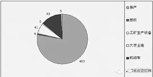 內(nèi)蒙古地區(qū)在淘寶網(wǎng)上線拍賣(mài)的案件總數(shù)為621件,其中,房產(chǎn)類(lèi)資產(chǎn)共483件,機(jī)動(dòng)車(chē)資產(chǎn)83件,兩項(xiàng)總計(jì)566件,占全部上線資產(chǎn)的91.14%。課題組對(duì)淘寶網(wǎng)司法拍賣(mài)專(zhuān)欄項(xiàng)下的全國(guó)法院上線資產(chǎn)類(lèi)型進(jìn)行了數(shù)據(jù)統(tǒng)計(jì),截至2015年4月11日,全國(guó)法院上線資產(chǎn)總計(jì)101233件,其中房地產(chǎn)和車(chē)輛總計(jì)88072件,占全部上線資產(chǎn)的86.59%。內(nèi)蒙古自治區(qū)上線資產(chǎn)類(lèi)型分布與全國(guó)法院淘寶網(wǎng)司法拍賣(mài)上線資產(chǎn)的資產(chǎn)類(lèi)型分布基本相同