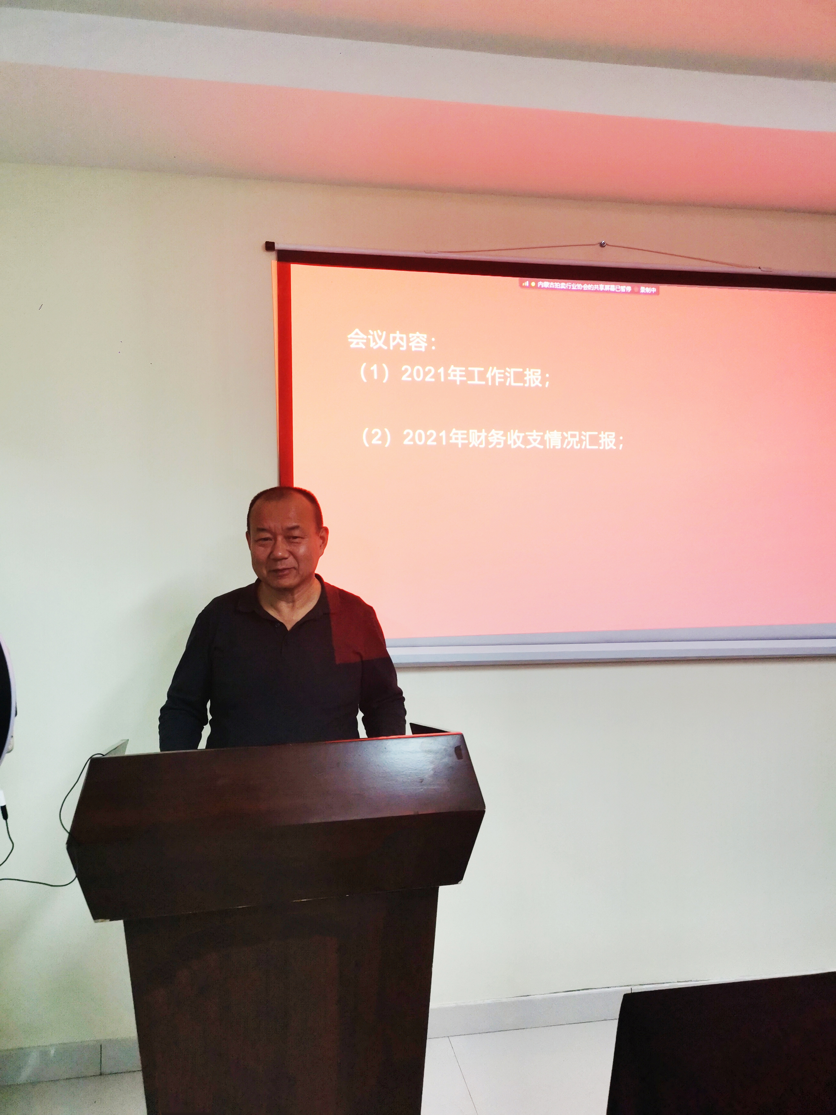 會議第一項由王志江會長做《2021協(xié)會工作報告》報告,報告中向各位參會人員介紹了1-12月份的全區(qū)拍賣行業(yè)與去年同期的經(jīng)營統(tǒng)計分析對比,從數(shù)據(jù)中以及圖表里可以看出我區(qū)拍賣業(yè)務(wù)是受到疫情影響的,多個業(yè)務(wù)板塊出現(xiàn)負增長;報告中還介紹了2021年協(xié)會的一些重點工作:協(xié)會承接的商務(wù)廳的“節(jié)能宣傳周”主題活動活動;開展“慶百年、學(xué)黨史、踐初心”的主題活動;以及不遺余力為我區(qū)企業(yè)爭取更加良好的營商環(huán)境,協(xié)會領(lǐng)導(dǎo)先后與商務(wù)廳、市場監(jiān)督管理局進行溝通商談,并發(fā)函商務(wù)廳和市場監(jiān)督管理局等情況。