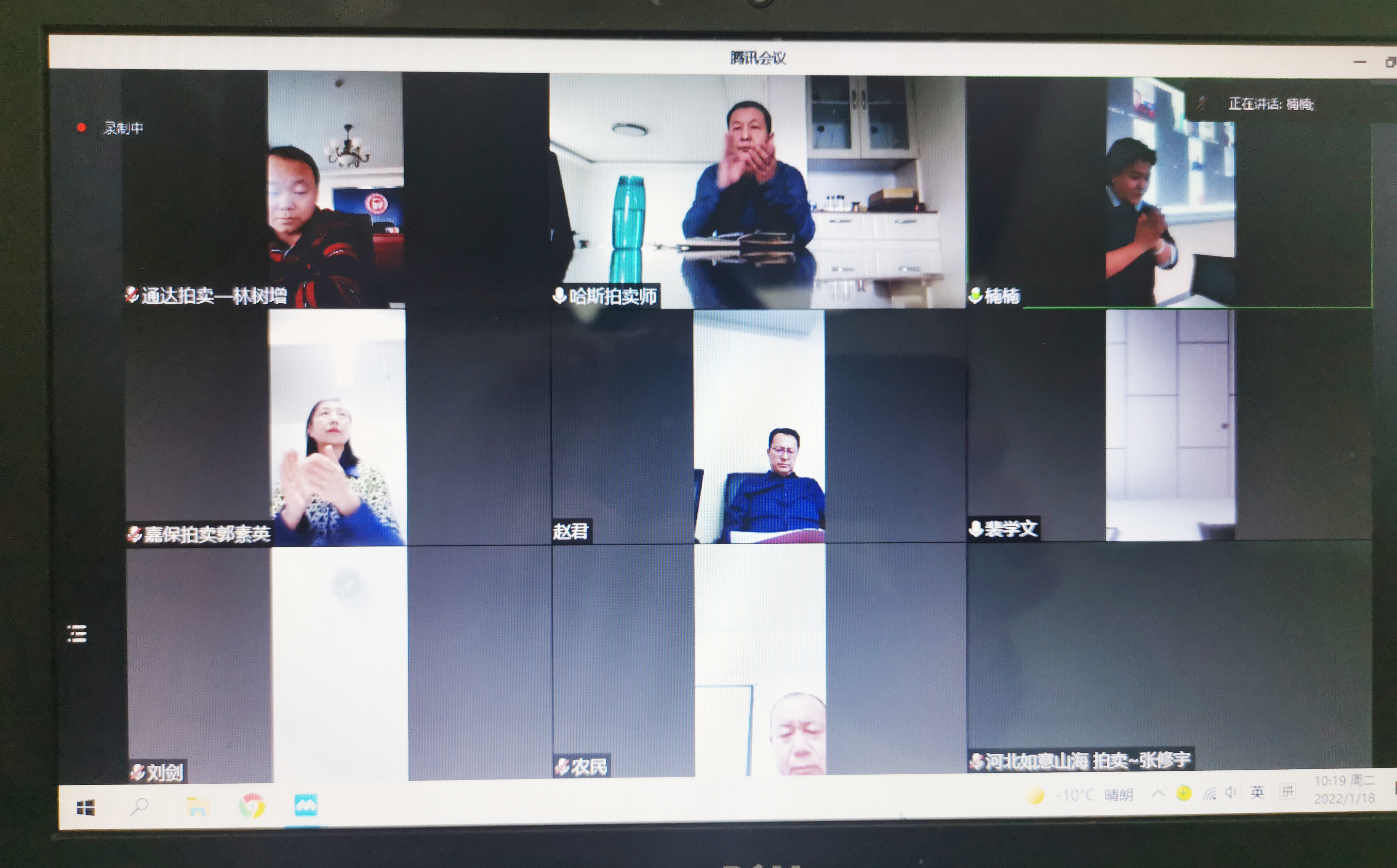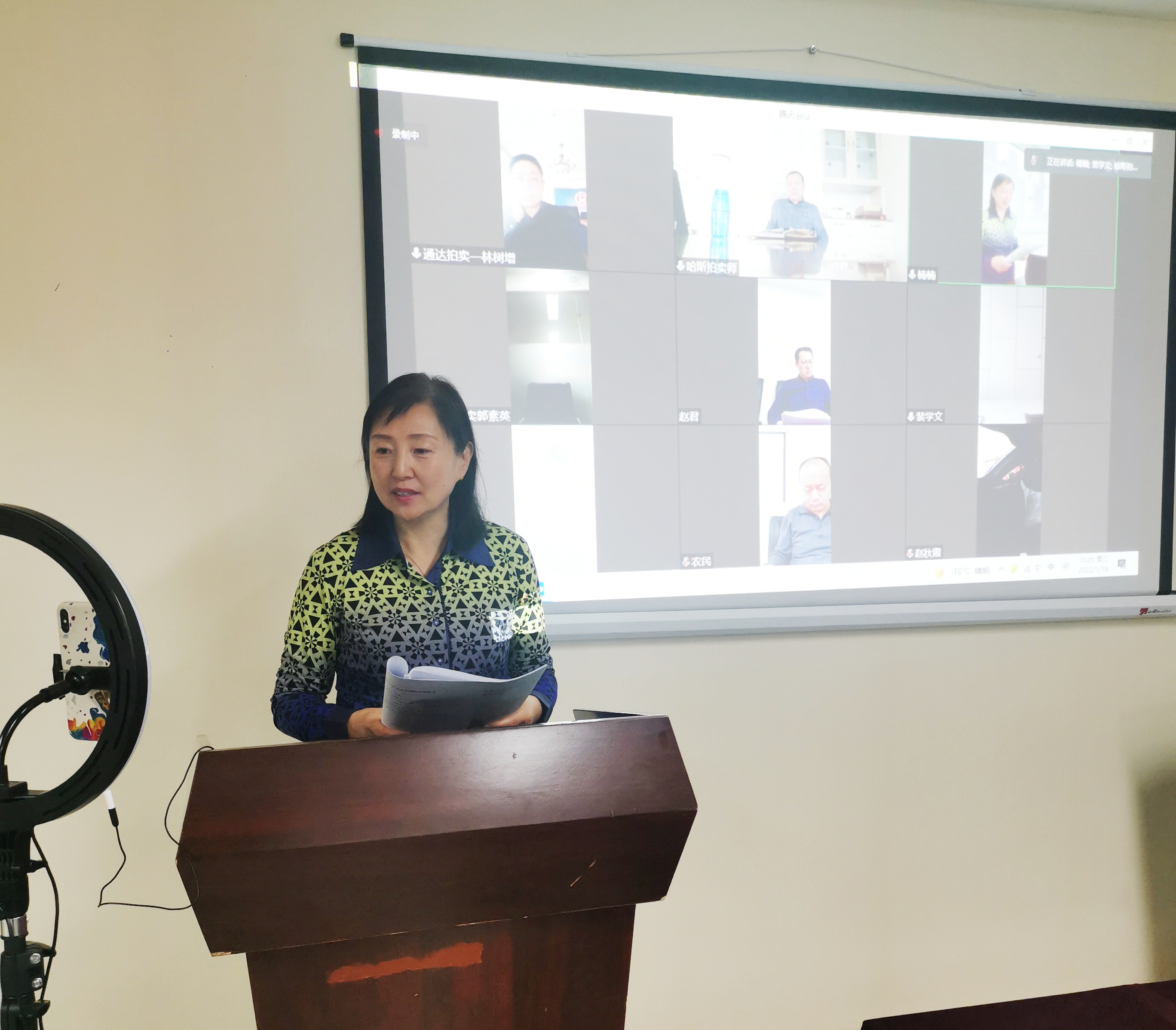內(nèi)蒙古拍賣行業(yè)協(xié)會五屆六次理事會 暨五屆九次常務(wù)理會圓滿落幕 面對新冠肺炎疫情形勢依然復(fù)雜嚴峻且病毒傳播方式趨于多樣化,為了大家的安全考慮,同時也考慮到大家的工作時間安排,本次內(nèi)蒙古拍賣行業(yè)協(xié)會五屆六次理事會暨五屆九次常務(wù)理會采取了線上形式召開。 2022年1月18日上午9:30,會議準(zhǔn)時召開?,F(xiàn)場參會人員有會長王志江、秘書長娜晴、副會長趙軍、郭素英、理事劉忠;騰訊會議室線上參會人員有副會長王罡、裴學(xué)文、李曉玲、林樹增、王峰、趙秋霞、蘆真、高燕剛、劉劍、張福忠;理事劉俊峰、張宏宇、哈斯格日勒圖;共計18人參會,符合《章程》會議召開規(guī)定。 會議由娜晴秘書長主持召開,娜晴秘書長表示由于疫情原因我們沒能面對面交流,但是我們采取線上線下相結(jié)合的會議模式,大家在網(wǎng)絡(luò)會議室一樣可以暢所欲言,為我們行業(yè)建言獻策。